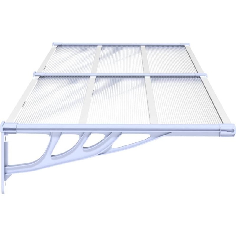 - Trwały materiał: wydrążone arkusze poliwęglanu, z którego zbudowano to zadaszenie nad drzwi frontowe, są niezwykle trwałe, odporne na warunki pogodowe i korozję.