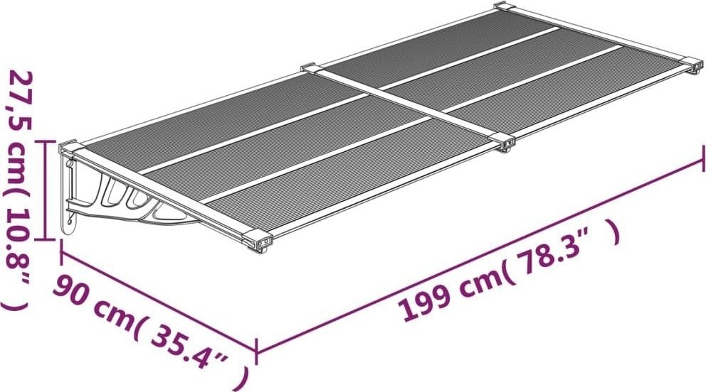 vidaXL Daszek nad drzwi, szaro-przezroczysty, 199x90 cm, poliwęglan