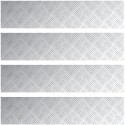 - Szczegóły: 4 nakładki na schody | Kształt: Prostokątny | Rozmiar: 90 x 20 x 0.2 cm | Materiał: Metal | Styl: Industrialny | Tekstura: Teksturowana | Kolor: Srebrny | Zastosowanie: Dla bezpieczniejszych schodów.
