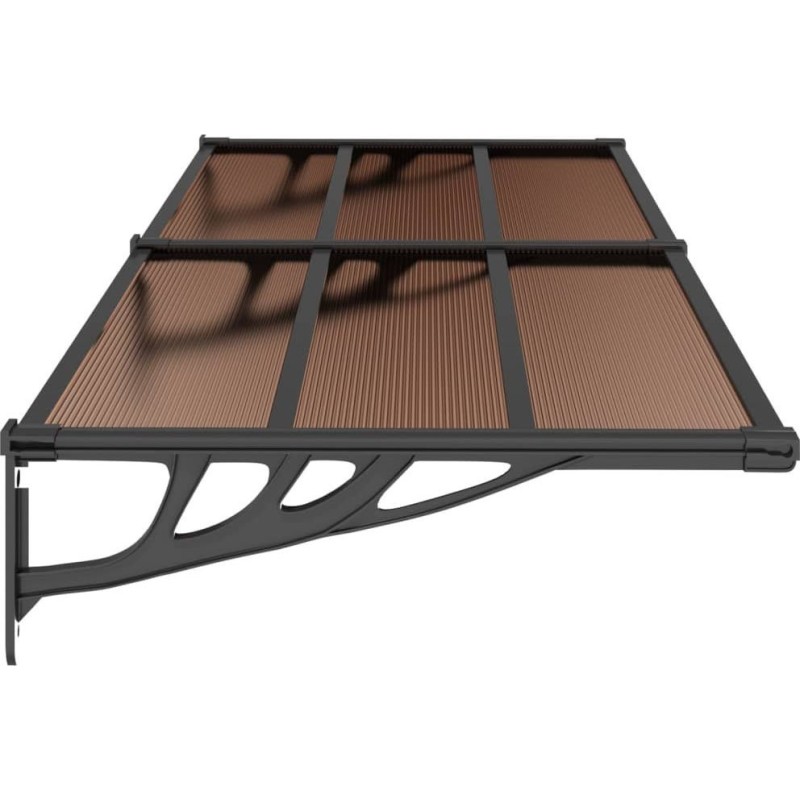 - Trwały materiał: wydrążone arkusze poliwęglanu, z którego zbudowano to zadaszenie nad drzwi frontowe, są niezwykle trwałe, odporne na warunki pogodowe i korozję.