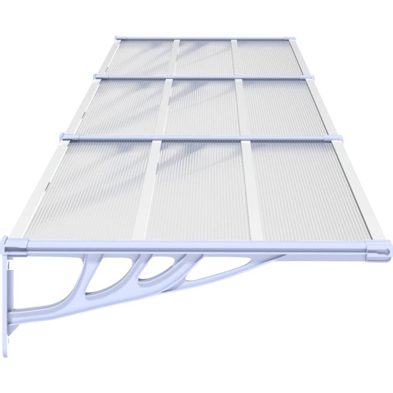 - Trwały materiał: wydrążone arkusze poliwęglanu, z którego zbudowano to zadaszenie nad drzwi frontowe, są niezwykle trwałe, odporne na warunki pogodowe i korozję.