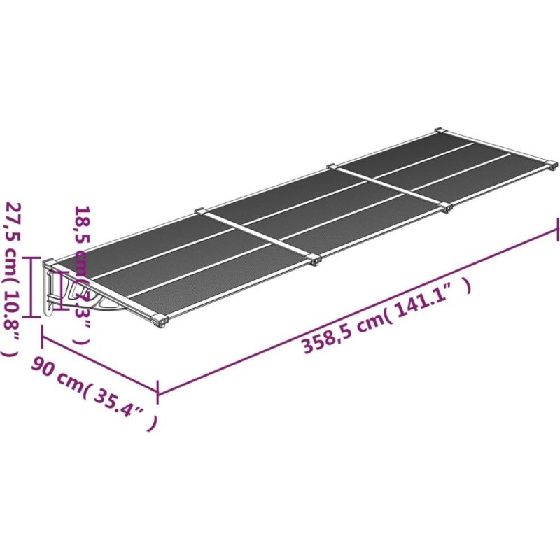 vidaXL Daszek nad drzwi, szaro-przezroczysty, 358,5x90 cm, poliwęglan