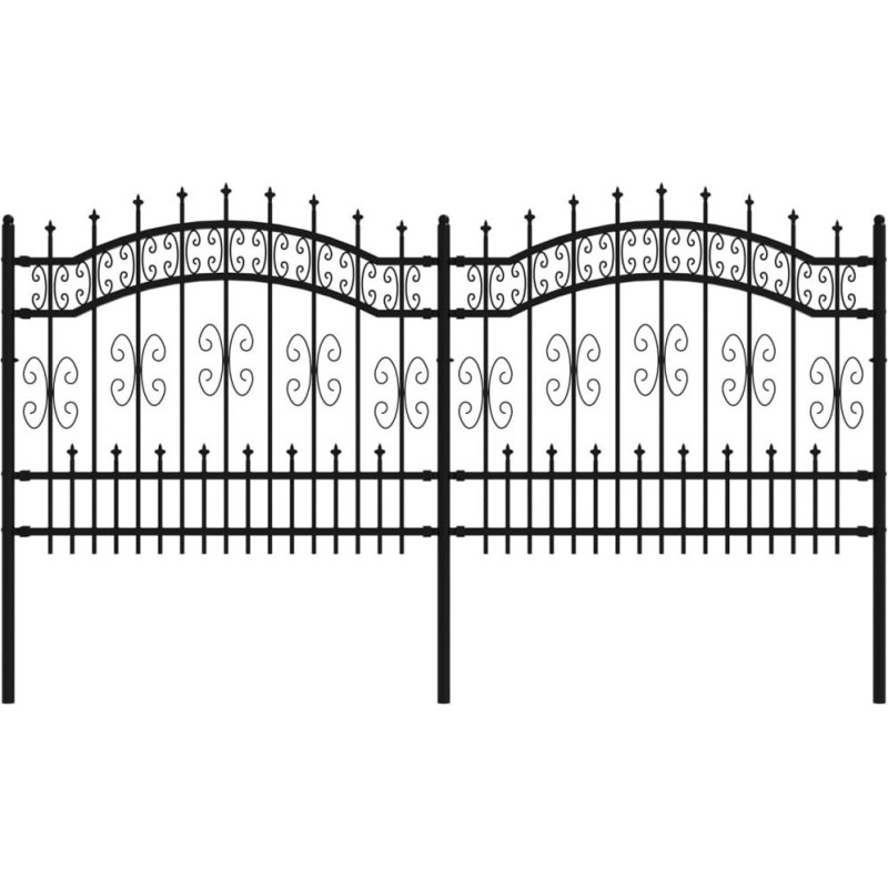 Ogrodzenie z grotami, czarne, 140 cm, malowana proszkowo stal