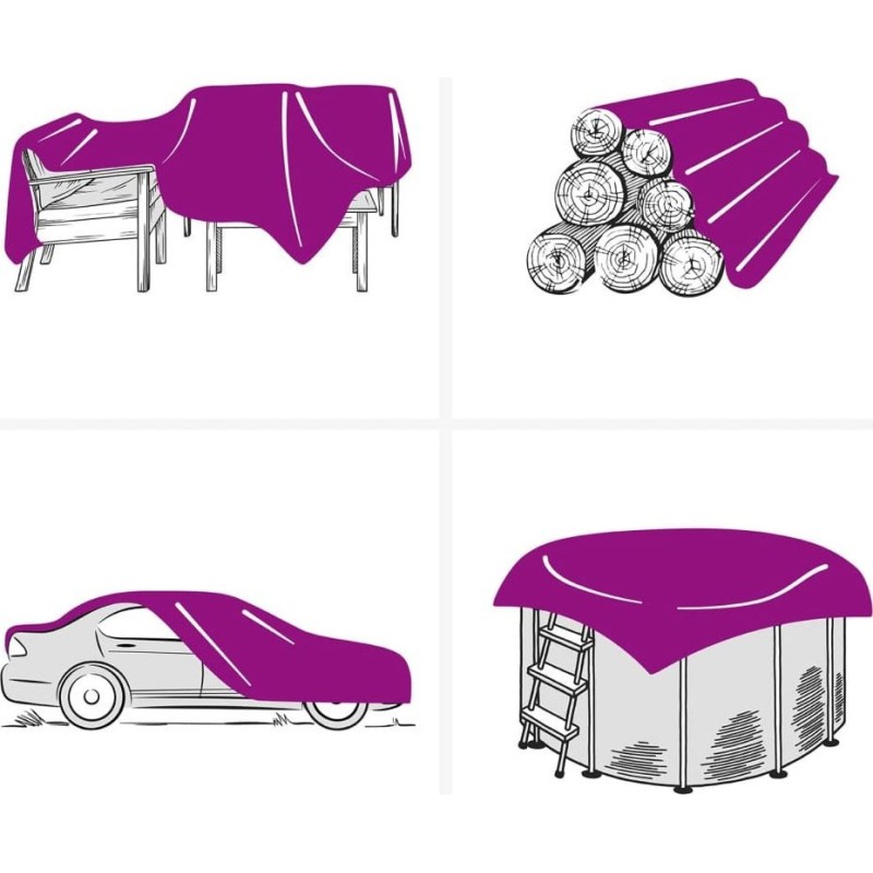 Ta uniwersalna i mocna plandeka sprawdzi się idealnie do przykrycia mebli ogrodowych, drewna opałowego, przyczep, samochodów, łodzi, rowerów, miejsc pracy czy materiałów budowlanych, chroniąc je przed czynnikami pogodowymi.