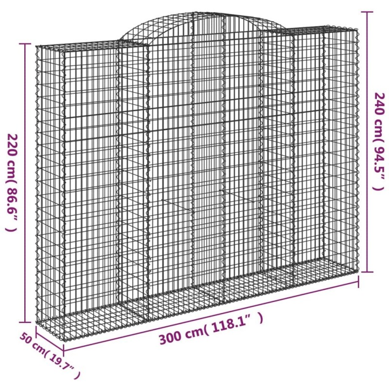 vidaXL Kosze gabionowe, 10 szt, 300x50x220/240cm, galwanizowane żelazo