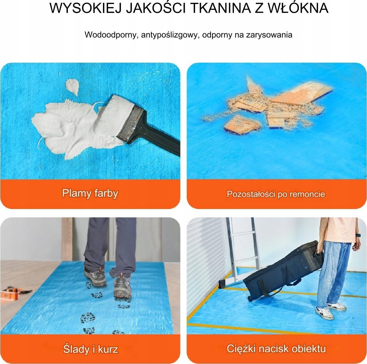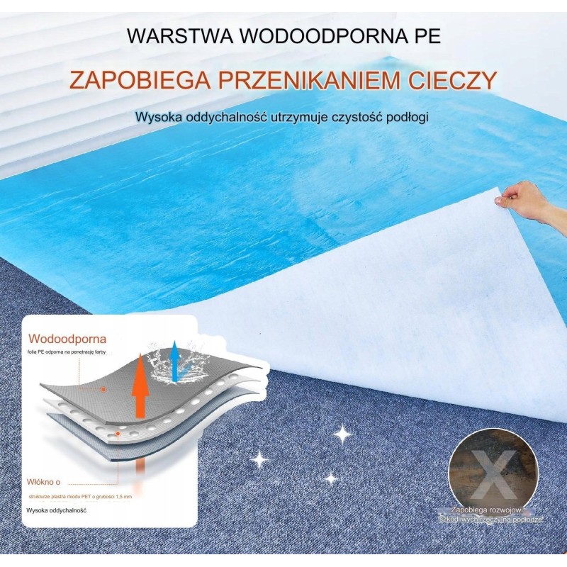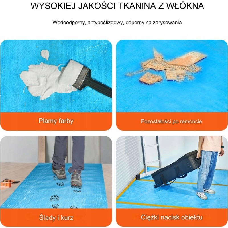 Należy pamiętać, że ten produkt jest przeznaczony do ochrony posadzek i nie jest odpowiedni do dywanów, takich jak wełniane i nylonowe.