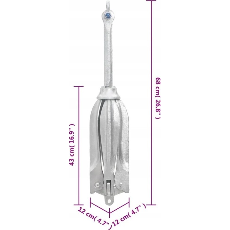 Kotwica składana z liną srebrna 12 kg żeliwo ciągliwe