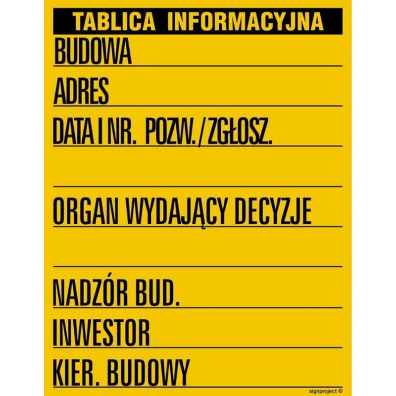 - Tematyka: tablica informacyjna budowlana