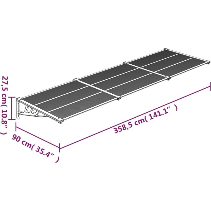 vidaXL Daszek nad drzwi, czarno-przezroczysty, 358,5x90 cm, poliwęglan