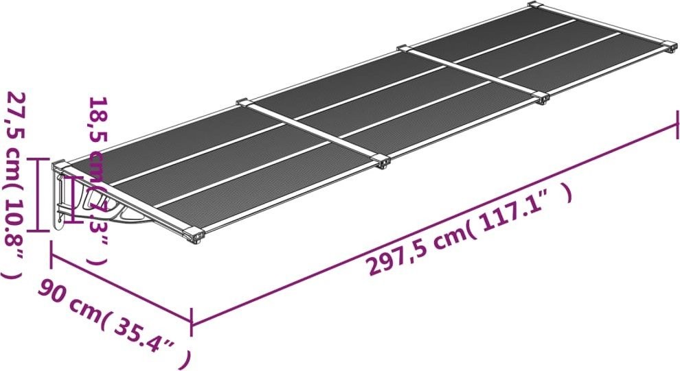 vidaXL Daszek nad drzwi, czarny, 297,5x90 cm, poliwęglan