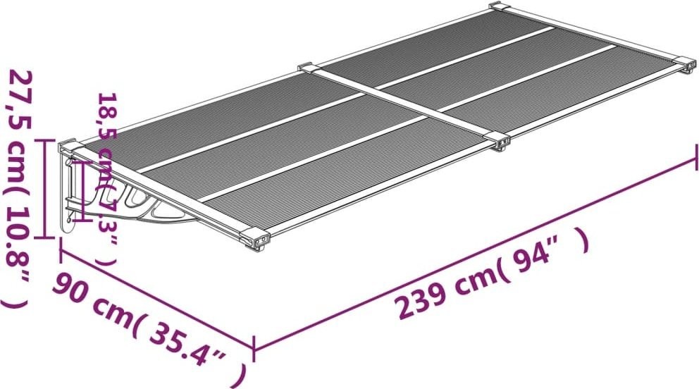 vidaXL Daszek nad drzwi, szaro-przezroczysty, 239x90 cm, poliwęglan