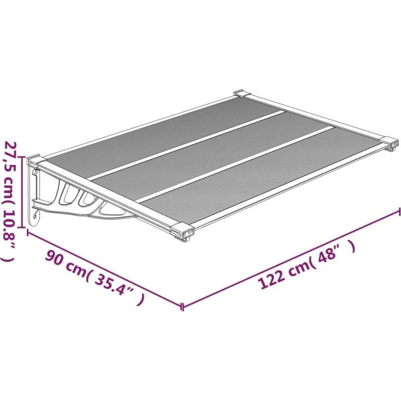 vidaXL Daszek nad drzwi, czarno-przezroczysty, 122x90 cm, poliwęglan