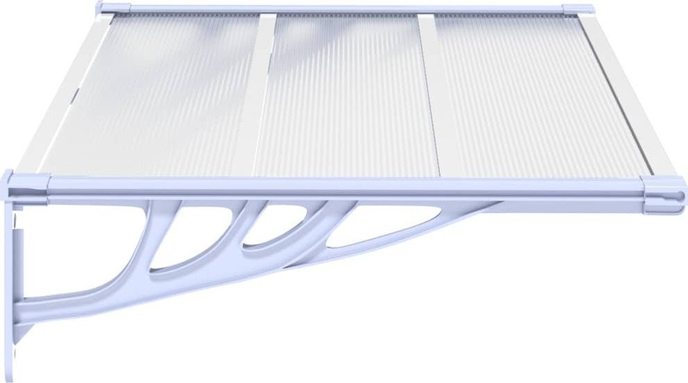 - Trwały materiał: wydrążone arkusze poliwęglanu, z którego zbudowano to zadaszenie nad drzwi frontowe, są niezwykle trwałe, odporne na warunki pogodowe i korozję.