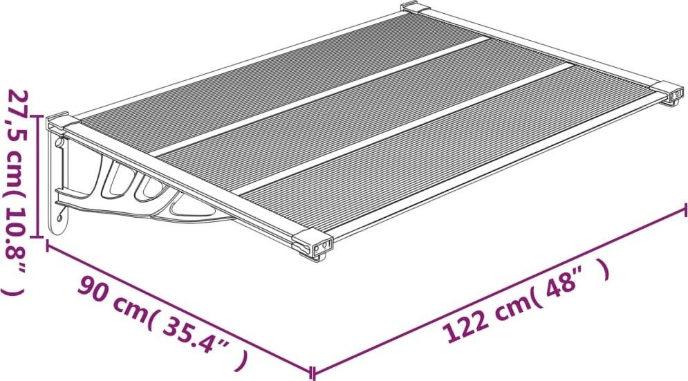 vidaXL Daszek nad drzwi, szaro-przezroczysty, 122x90 cm, poliwęglan