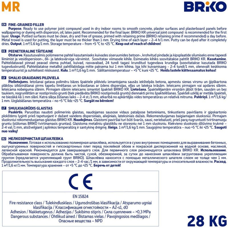 Specyfikacja techniczna PUTTY BRIKO 28KG Z MARMUROWYM WYPEŁNIACZEM