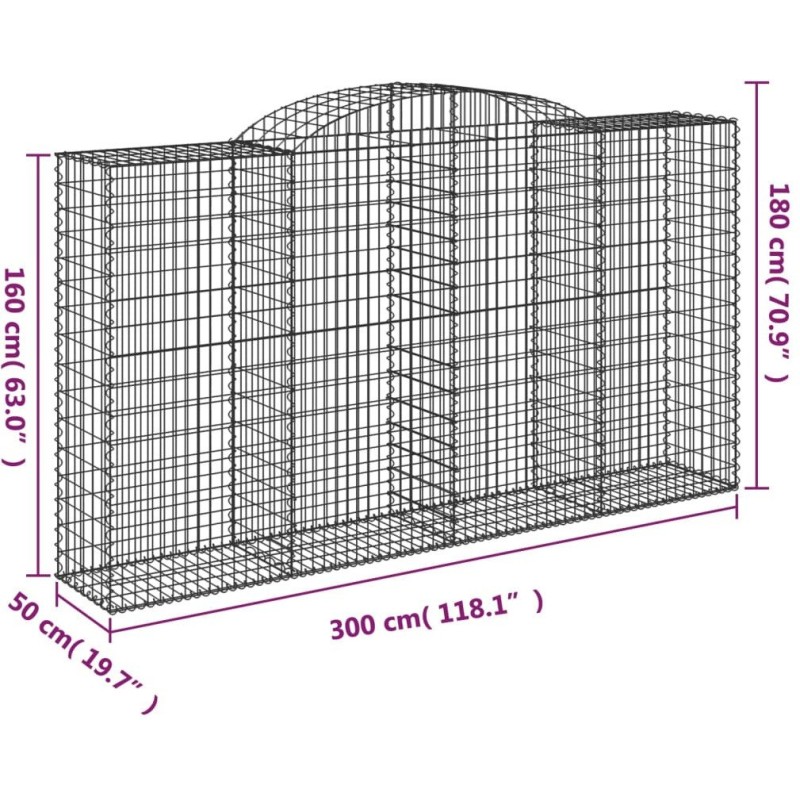 vidaXL Kosze gabionowe, 25 szt, 300x50x160/180cm, galwanizowane żelazo