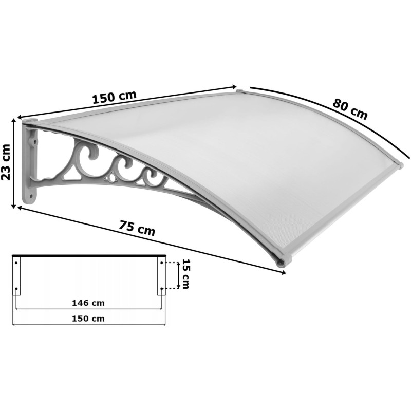Daszek plastikowy Beno 80x150cm szary⭐️ Skuteczna ochrona drzwi przed warunkami atmosferycznymi ⭐️ Odporny na promieniowanie UV ⭐️ Mocna i stabilna konstrukcja ⭐️ Samodzielna instalacja⭐️ Nie wymaga konserwacji⭐️ Zakup od producenta✨Daszek plastikowy nad drzwi Beno 80x150 – Praktyczna osłona do domu i biura✨Zyskaj ochronę i styl w jednym – daszek nad drzwi Beno 80x150 cm szary to skuteczna osłona przed deszczem, śniegiem i słońcem, która zabezpiecza drzwi i osoby wchodzące do domu. Montujesz go samodzielnie, bez potrzeby wynajmowania fachowca. Solidna konstrukcja z filtrem UV to gwarancja trwałości i estetyki na lata. CechyMateriał pokrycia: Poliwęglan komorowy, przezroczystyKolor konstrukcji: SzaryMocowania: Tworzywo sztuczne + aluminiumGrubość płyty: 5,2 mmFiltr UV: TakTyp montażu: Ścienny, samodzielnyW zestawie: 4x wkręty, 4x kotwy, 4x zaślepki, instrukcjaZapewnia skuteczną ochronę przed warunkami atmosferycznymiTrwały materiał i stabilna konstrukcjaEstetyczny design Wymiary zadaszeniaDługość: 80 cmSzerokość: 150 cmWysokość: 23 cmGłębokość: 75 cm Informacje dodatkowePrzedstawione kolory należy traktować poglądowo - mogą odbiegać od rzeczywistych ze względu na różne ustawienia monitorów oraz proces obróbki zdjęć. Rzeczywiste wymiary mogą się różnić od podanych wyżej. Tolerancja błędów może wynosić +/- 5%. Marka:GockowiakKod produktu:331804MGKod EAN:5902340331804Kolor:szarySzerokość:150 cmDługość:80 cmGrubość płyty:5,2 mmMateriał:poliwęglan, tworzywo sztuczne