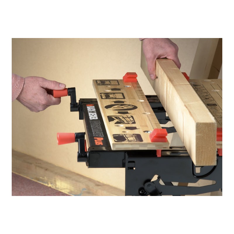 - 2 wysokości robocze umożliwiają wykorzystanie jako stołu warsztatowego, stołu narzędziowego, imadła oraz kozła do piłowania drewna