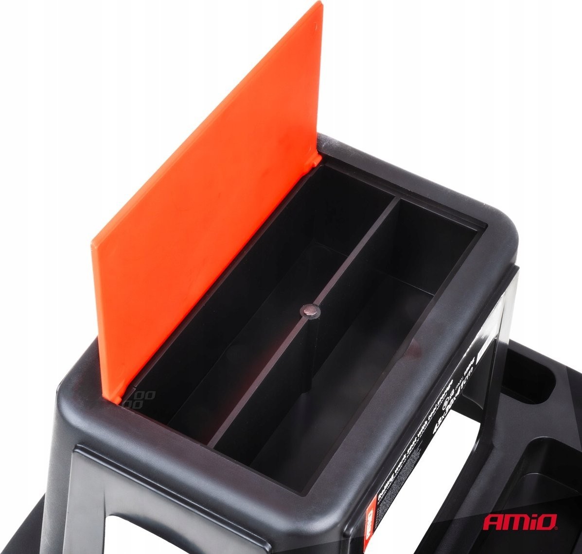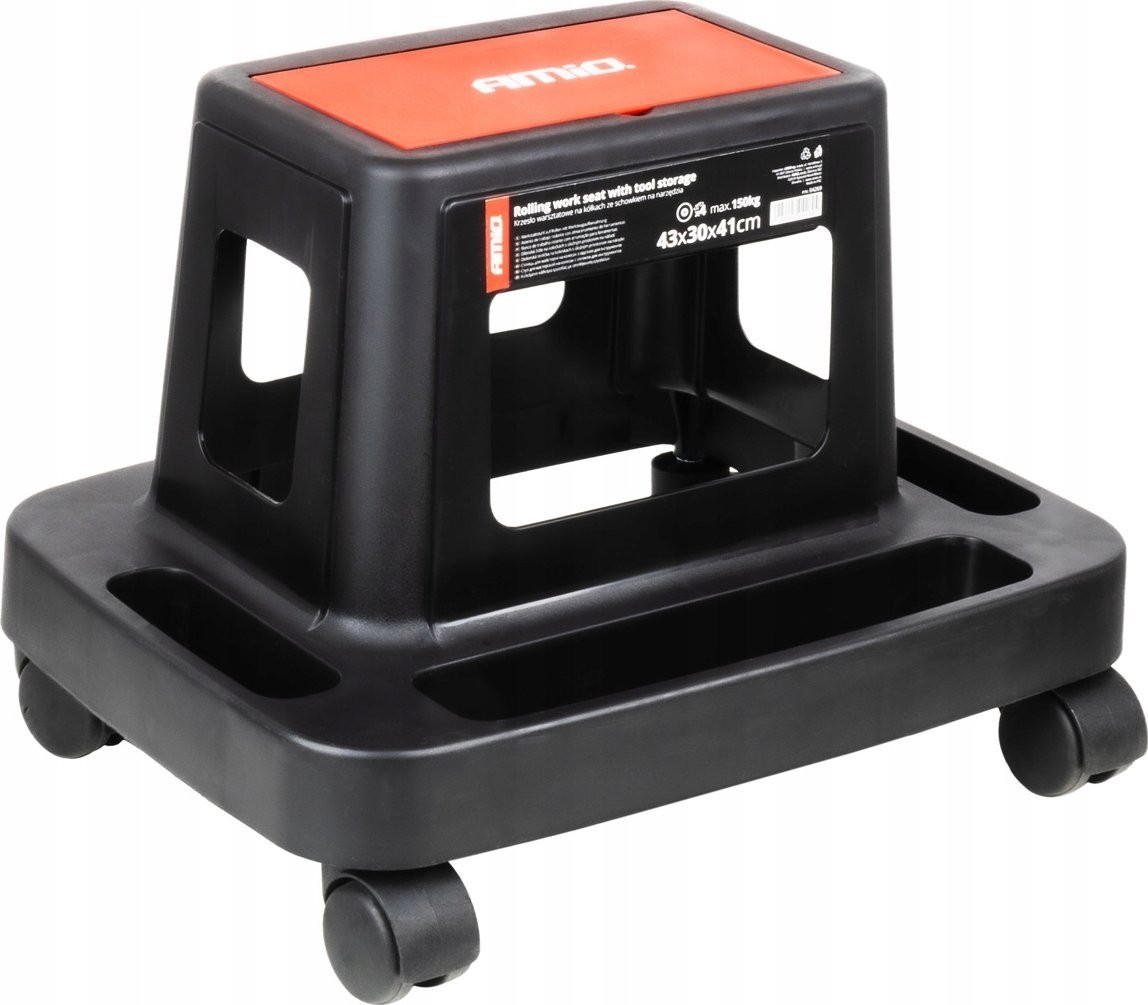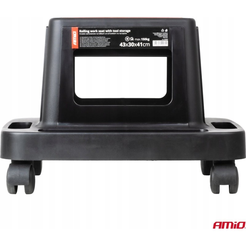 Krzesło warsztatowe na kółkach z wbudowanym schowkiem 150 kg amio-04269