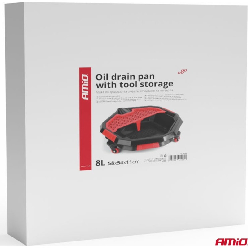 Miska zlewarka oleju na kółkach ze schowkiem na narzędzia amio-04264