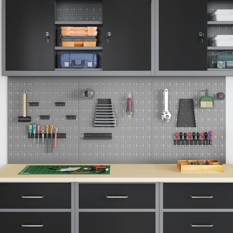 - Efektywne wykorzystanie przestrzeni: Montowany na cianie design to rozwizanie, ktre wietnie sprawdzi si w wskich przestrzeniach, co czyni go idealnym do garay i warsztatw. Utrzymuje narzdzia w zasigu rki, uwalniajc cenn przestrze na pododze.