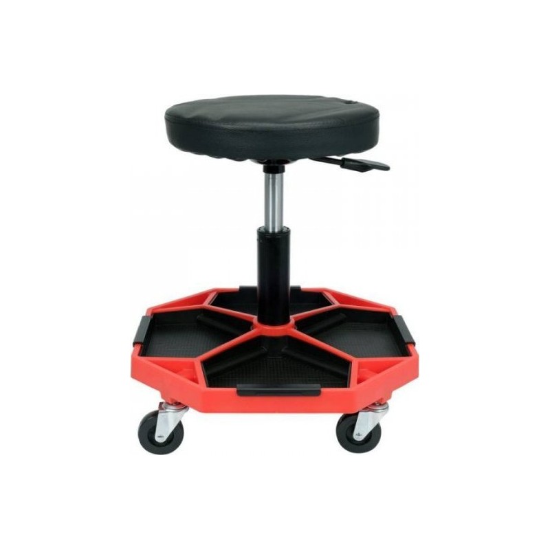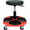 Komfortowe krzesło warsztatowe z przegródkami do przechowywania małych rzeczy.