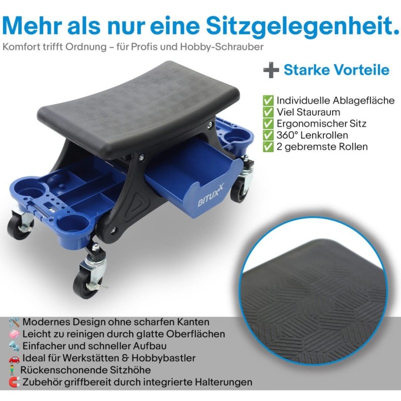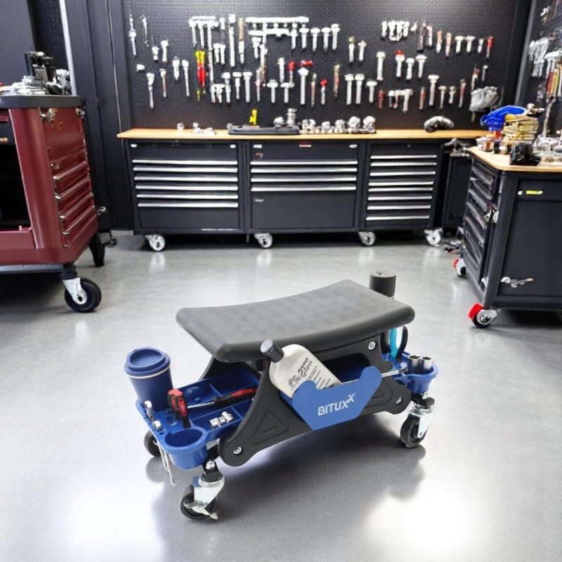 Stołek warsztatowy Bituxx to idealne połączenie mobilności ????, komfortu ???? i praktycznego przechowywania ???? – doskonały do warsztatu, garażu lub dla majsterkowiczów ????????.