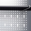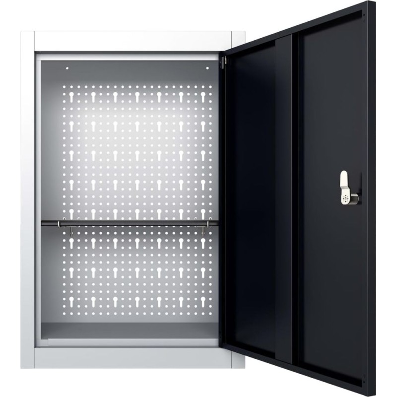 Szafka ma półkę o regulowanej wysokości i perforowaną płytę z otworami Euro, która może posłużyć do wieszania różnych narzędzi, takich jak klucze, szczypce, młotki itp. Wyposażona w zamykane drzwiczki (załączone są 2 kluczyki) szafka zapewnia większe bezpieczeństwo. Metalowa konstrukcja z wyjątkowo mocną, odporną na zarysowania powłoką sprawia, że mebel jest wytrzymały i łatwy w czyszczeniu. Produkt wymaga montażu.