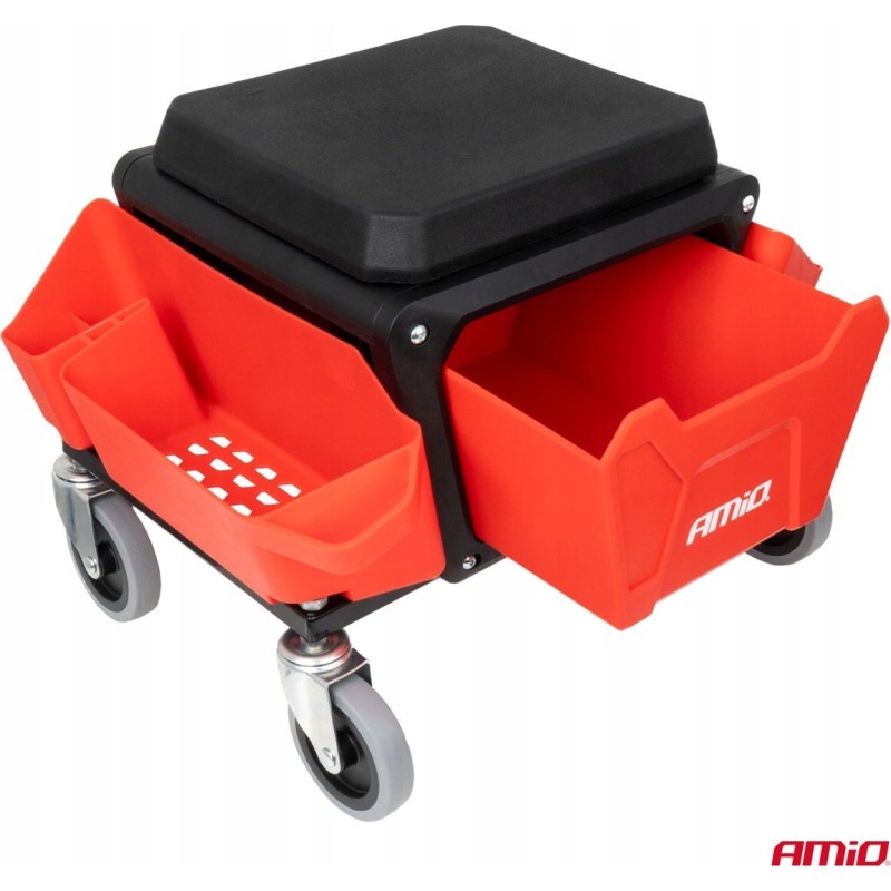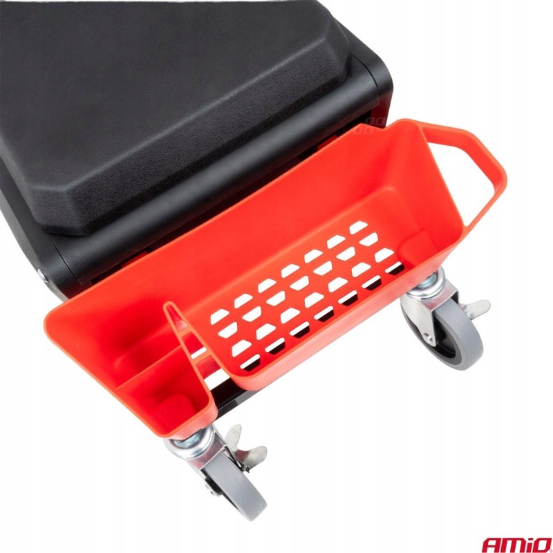 Krzesło warsztatowe na kółkach ze schowkiem na narzędzia 150kg amio-04268