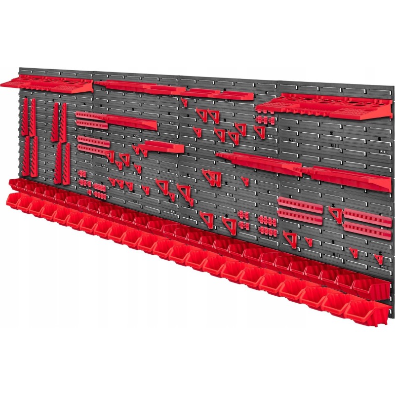 MODUŁOWA BUDOWA – duża tablica narzędziowa ma modułową budowę. Składa się z wielu elementów, które możesz dowolnie konfigurować i rozbudować o kolejne moduły. Uniwersalny rant umożliwia powieszenie zarówno kuwet warsztatowych, półek, jak i wieszaków narzędziowych.