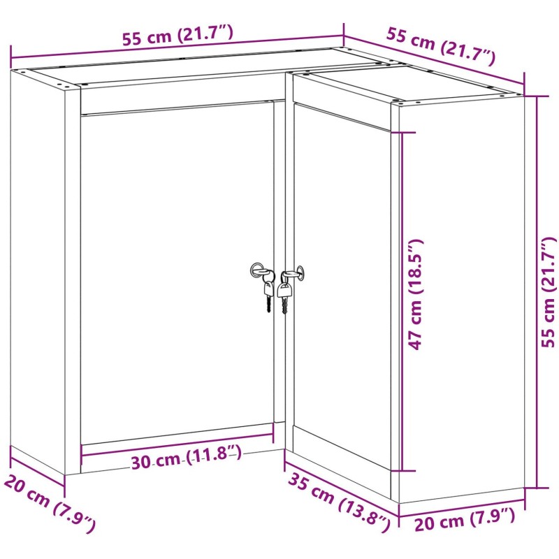 VidaXL Narożna Szafa Narzędziowa, Montowana na Ścianie i Zamek, Czerwona Stal