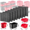 FUNKCJONALNE - kuwety warsztatowe pomieszczą naprawdę sporo elementów drobnicowych i niewielkich narzędzi. Natomiast na uchwytach i półkach powiesisz śrubokręty, klucze, młotki i wiele innych akcesoriów, które chcesz mieć pod ręką.