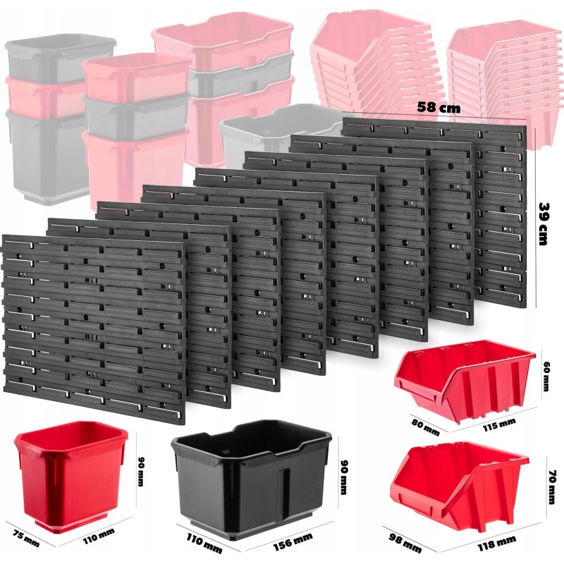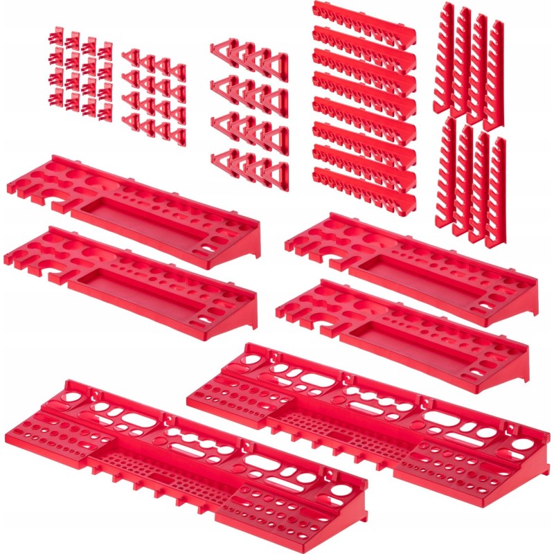 WYGODNE - kuwety magazynowe, półki i uchwyty wystarczy umieścić na tablicy narzędziowej, a następnie wypełnić je akcesoriami. Można ułożyć je w dowolnej konfiguracji.