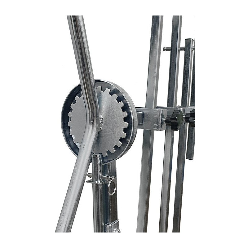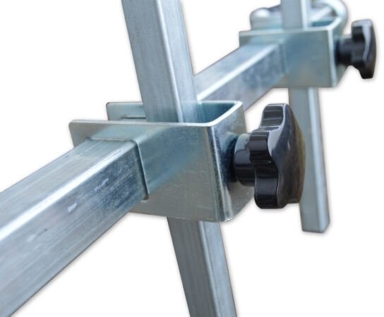 - Śrubowe zaciski regulujące wysunięcie ramion: Tak