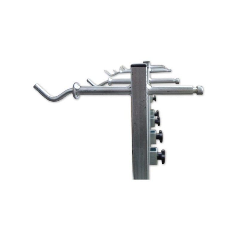 Obrotowy stojak lakierniczy SL2 to znakomite narzędzie dla każdego, kto zajmuje się malowaniem różnych elementów. Wyposażony w 10 ramion mocujących, w tym 8 dłuższych z podwójnym systemem mocowań oraz 2 krótszymi zakończonymi hakami, zapewnia stabilne mocowanie malowanych przedmiotów pod różnymi kątami. Jego solidna konstrukcja z ocynkowanej stali gwarantuje trwałość oraz odporność na uszkodzenia, co czyni go niezawodnym wyborem w każdej pracowni.