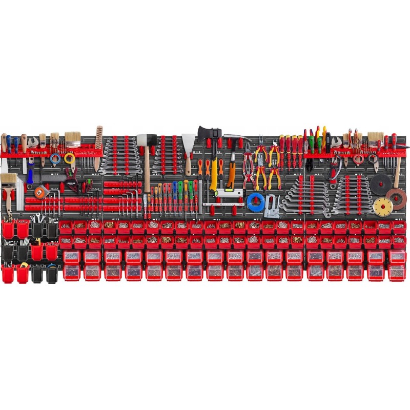 WYGODNE - kuwety magazynowe, półki i uchwyty wystarczy umieścić na tablicy narzędziowej, a następnie wypełnić je akcesoriami. Można ułożyć je w dowolnej konfiguracji.