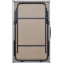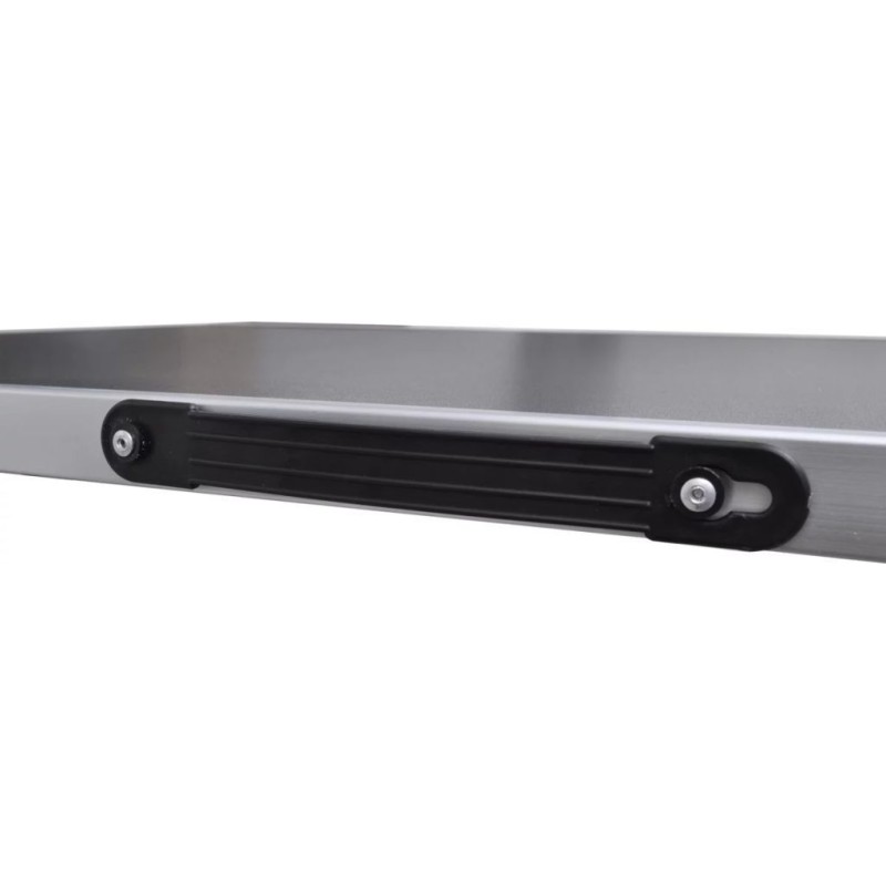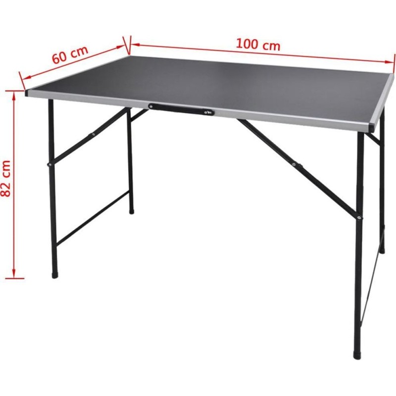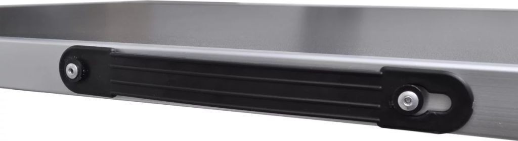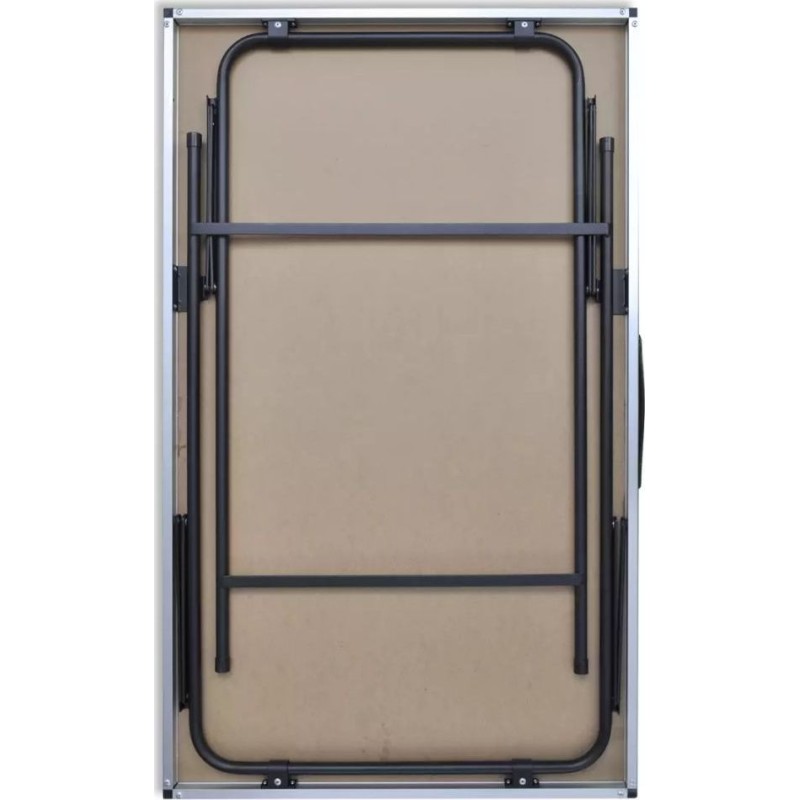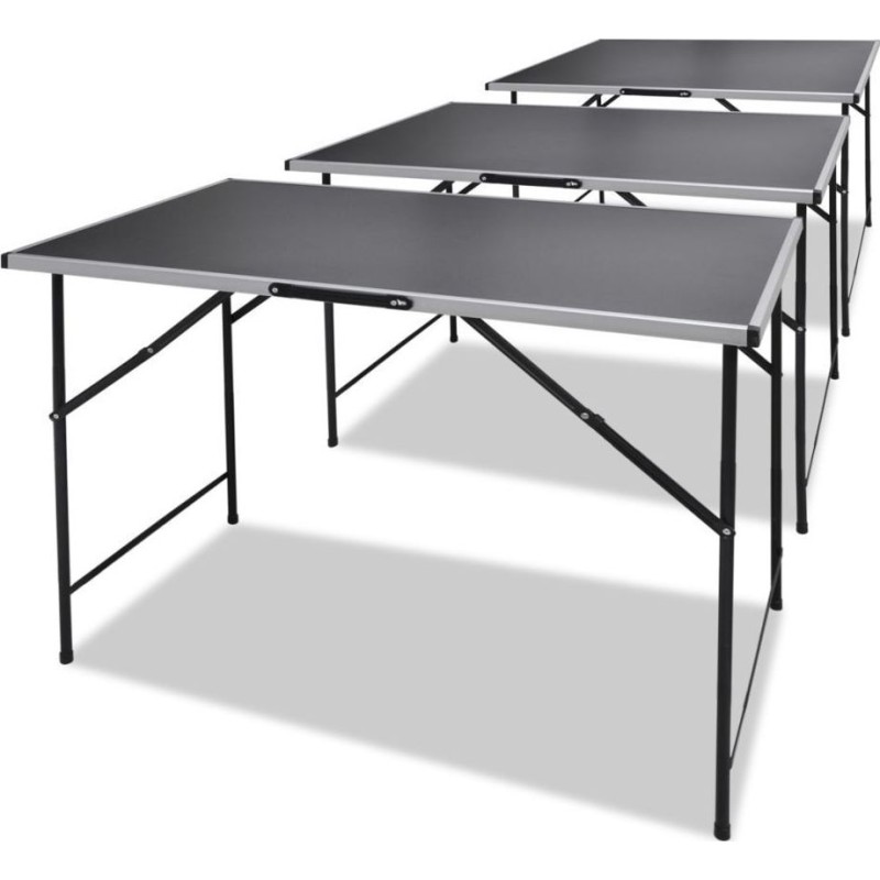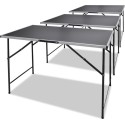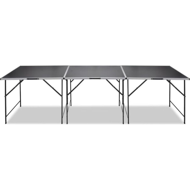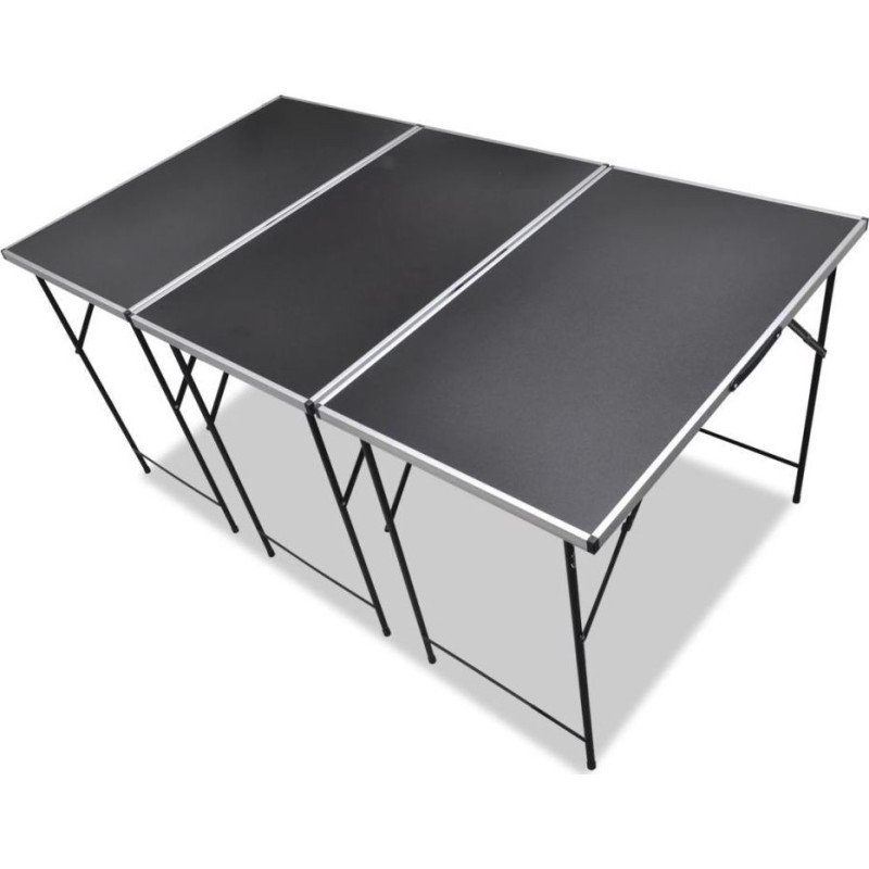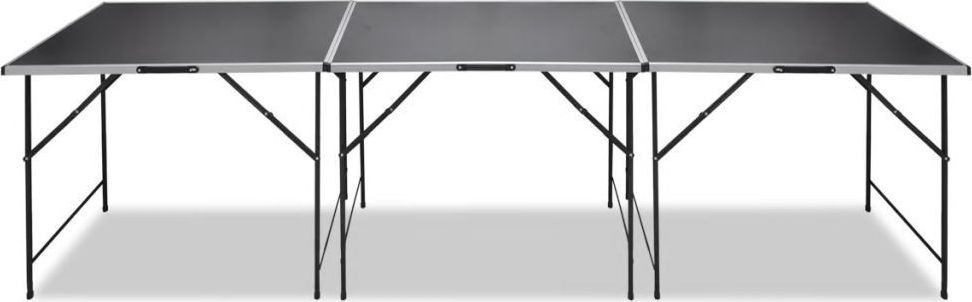 Każdy ze stołów ma ramę wykonaną z mocnego i lekkiego aluminium oraz blat z łatwego do czyszczenia MDF. Zestaw o mocnych, żelaznych nogach jest barrdzo mocny i stabilny. Stoły można połączyć za pomocą załączonych haczyków. Każdy z nich jest składany, co ułatwia przenoszenie i przechowywanie.