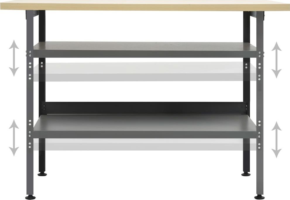 Dodatkowo stopki mają regulowaną wysokość, możesz więc umieścić swój stół roboczy tam, gdzie go potrzebujesz i ustawić stabilnie nawet na nierównym podłożu. Mebel ten wykonano z najlepszej stali i płyty wiórowej, dzięki czemu jest wyjątkowo wytrzymały, trwały i łatwy do czyszczenia. Montaż jest łatwy. Ten stół warsztatowy będzie doskonałym pomocnikiem niezależnie od tego, czy chcesz dokończyć swoje naprawy, czy spełnić marzenia o miejscu do majsterkowania!