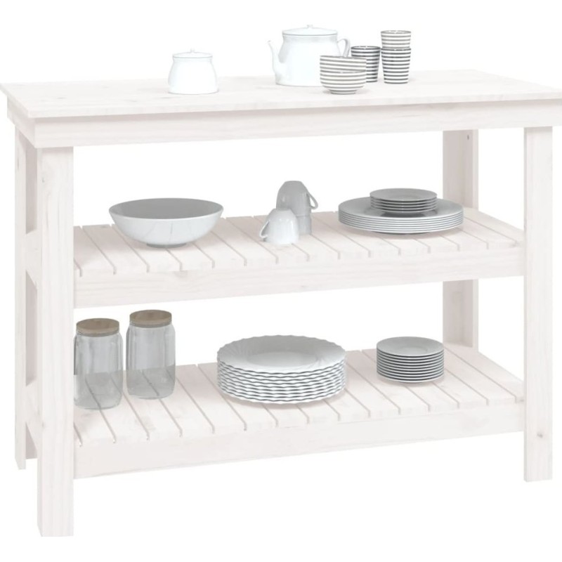 vidaXL vidaXL Stolik roboczy, biały, 110,5x50x80 cm, lite drewno sosnowe