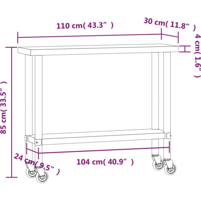 vidaXL Kuchenny stół roboczy na kółkach, 110x30x85 cm, stal nierdzewna