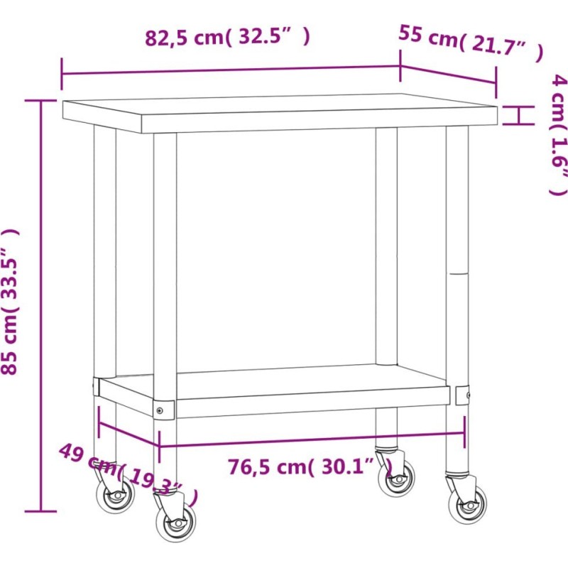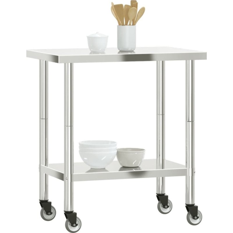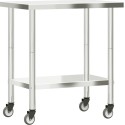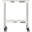 vidaXL Kuchenny stół roboczy na kółkach 82,5x55x85 cm, stal nierdzewna