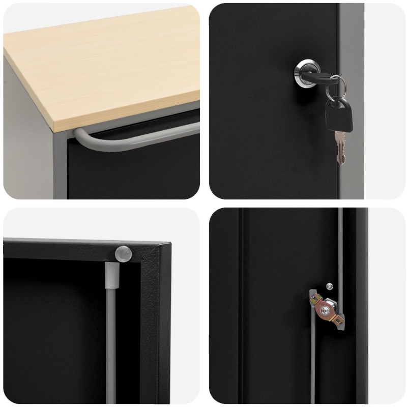 - Mechanizm blokujący: Ta szafka ma solidny system blokujący, zapewniając lepsze bezpieczeństwo dla twoich rzeczy. Świetna do warsztatów, gdzie bezpieczeństwo jest kluczowe.
