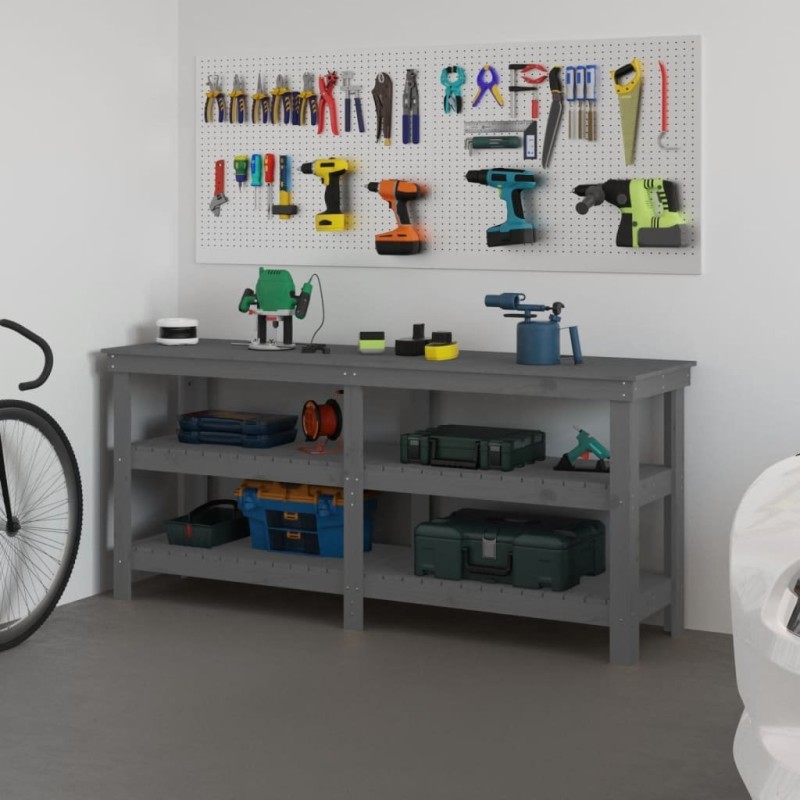 vidaXL vidaXL Stolik roboczy, szary, 181x50x80 cm, lite drewno sosnowe