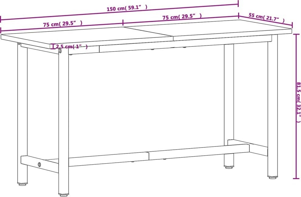 - Wymiary całkowite: 150 x 55 x 81,5 cm (dł. x szer. x wys.)