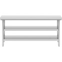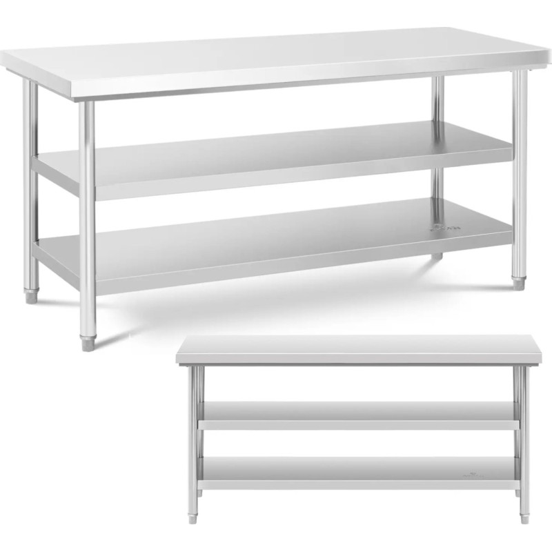 Royal Catering Stół blat roboczy centralny stalowy 2 półki 180 x 70 cm do 600 kg Stół blat roboczy centralny stalowy 2 półki 180