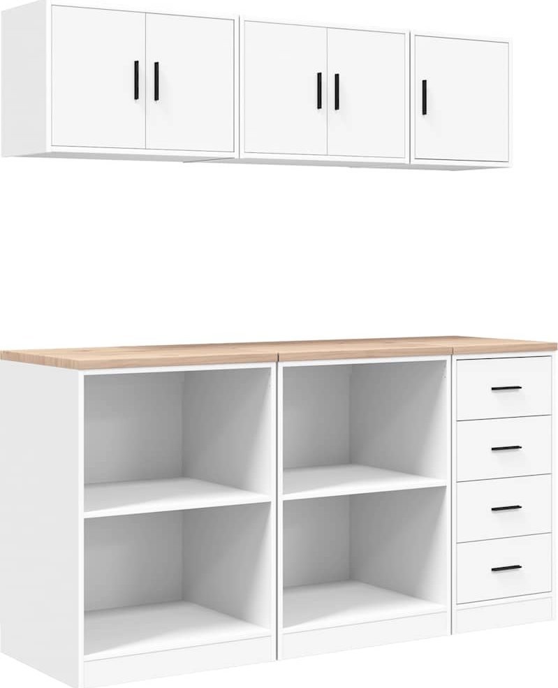 Szafki garażowe 6 szt. Białe drewno klejone