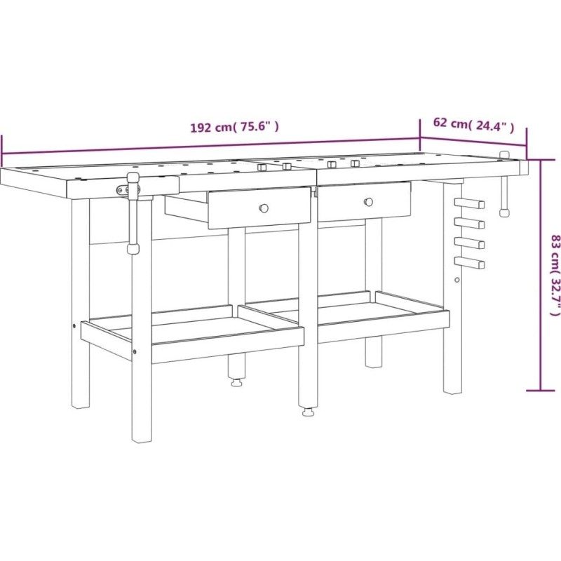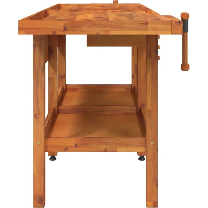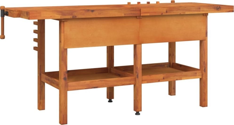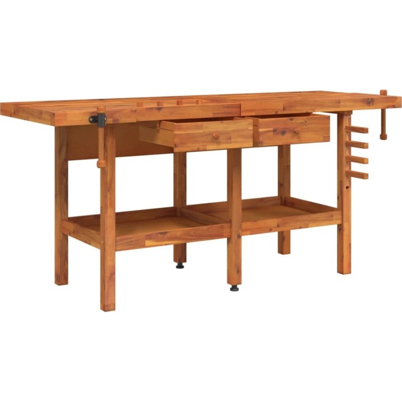vidaXL vidaXL Stolik roboczy z szufladami i imadłami, 192x62x83 cm, akacjowy