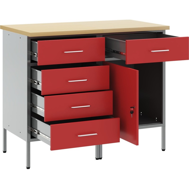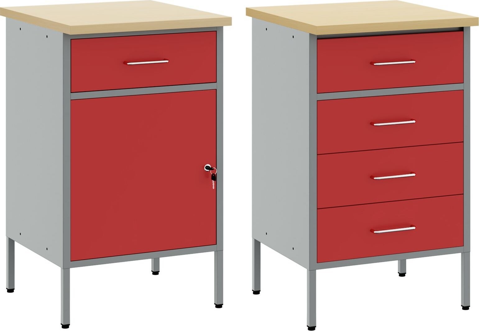 Ten zestaw stalowych szaf roboczych to absolutny must-have dla wszystkich, ktrzy chc uatwi sobie prac. O wymiarach 50 x 55 x 85 cm, te mocne szafy w czerwono-szarym kolorze stanowi wietny wybr, ktry dobrze wyglda i nadaje Twojemu warsztatowi nowoczesny akcent.