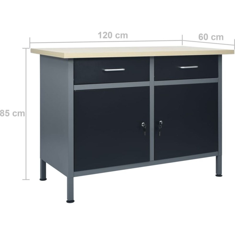 Wytrzymały stół warsztatowy wyróżnia się dużą przestrzenią do przechowywania i nośnością 500 kg. Ma 2 szuflady, pozwalające odpowiednio uporządkować narzędzia, części i akcesoria, takie jak śruby, gwoździe i taśmy klejące. Szuflady wyposażono w prowadnice z łożyskami kulkowymi w celu płynnego wysuwania i wsuwania. Mebel ma 2 półki i dużą przestrzeń z 2 zamykanych drzwiczek, w których można łatwo pomieścić wiertarki, bębny z kablami i szlifierki. Dodatkowo stopki mają regulowaną wysokość. Ten mebel roboczy wykonano z najlepszej stali i płyty wiórowej, dzięki czemu jest wyjątkowo wytrzymały, trwały i łatwy do czyszczenia. Zestaw jest łatwy w montażu.