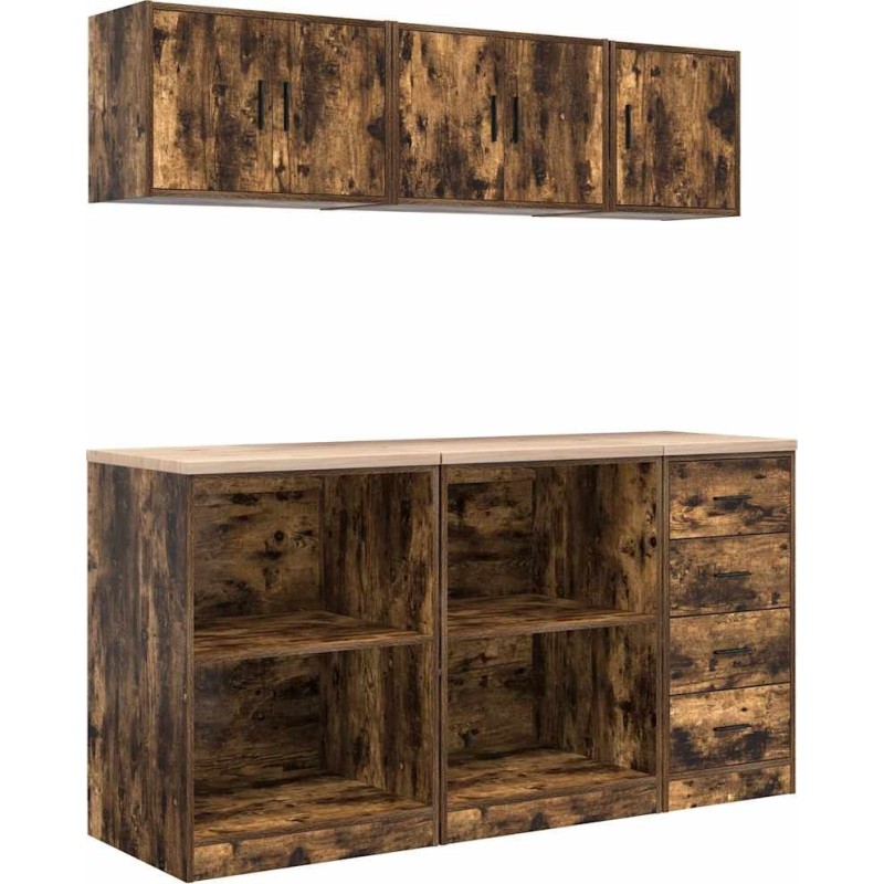 Szafki garażowe 6 szt. Dąb wędzony Drewno klejone